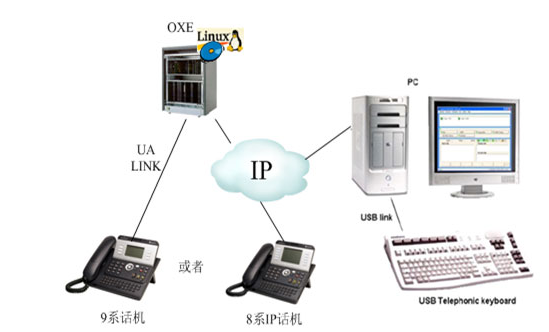 4059 IP解决方案基于Alcatel多媒体键盘,通过IP网络与Alcatel OmniPCX Enterprise 服务器相连。
